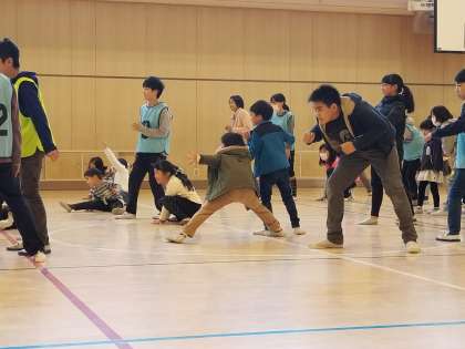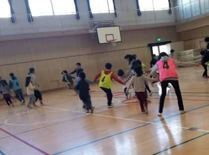 ドッジビー、だるまさんが転んだ、鬼ヶ島、ペアを探せ? のゲームをペアで楽しみました。