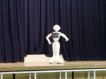 その後、ペッパー君も朝会に参加し、テンション上げていこうと、お話した後、「恋するフォーチュンクッキー」のダンスを披露してくれました。