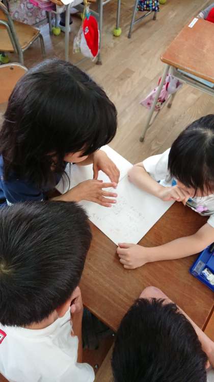 どこを、どんなふうに案内して説明したらいいか、友だちと一緒に考えていますた。