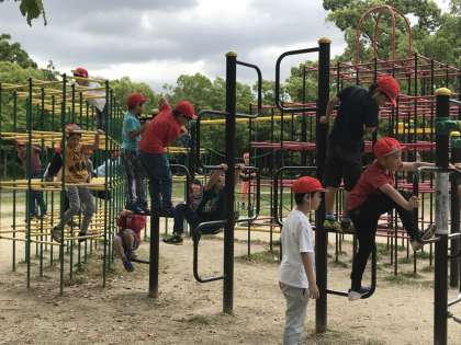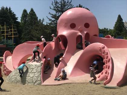 大泉緑地公園に春の遠足へ出かけました。駅から公園までは遠くて大変でしたが、遊具をみた瞬間、子どもたちの目はキラキラ。疲れも忘れて走り回っていました。