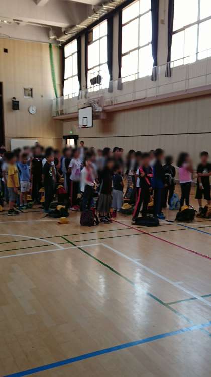 おうちの方や先生方に出迎えられ、元気に帰校式を行いました。