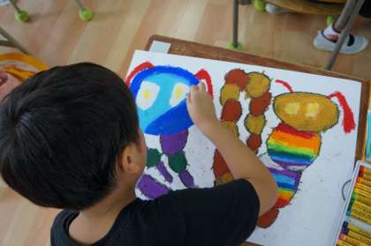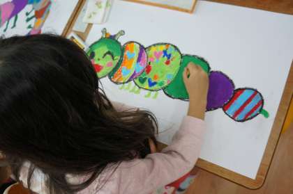 図工で、パスを使い、いもむしを描きました。
