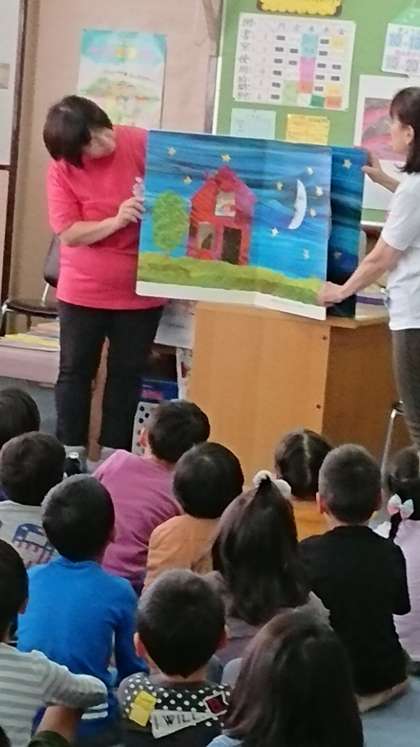 1年生の読み聞かせは、大きな絵本でした。