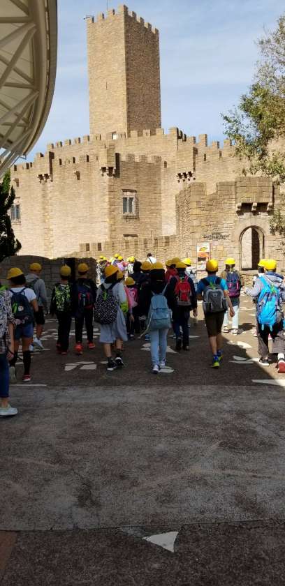 子どもたちは、志摩スペイン村に到着しました。入園前に、先生からの話を聞きました。