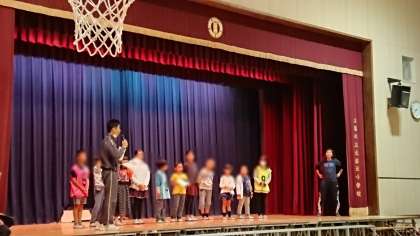 今日は児童集会で、1日にあったふれあい遠足の表彰をしました。