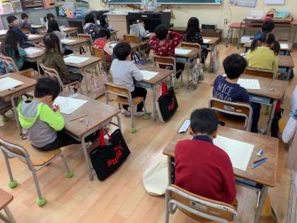一年生から六年生まで、約300名が日頃の漢字学習の成果を出す場として受検しました。