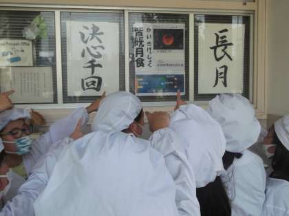 校長先生から、「皆既月食」の話がありました。