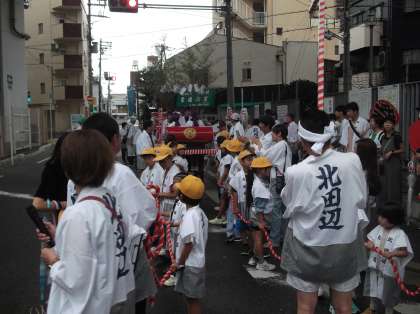 子ども神輿が、地域の発展・振興を祈念し北田辺の地域を巡行しました。