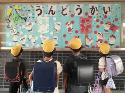 玄関掲示では、運動会の掲示物に変わっています。