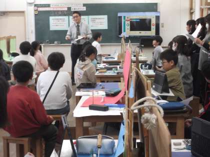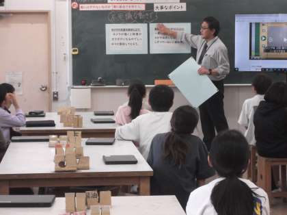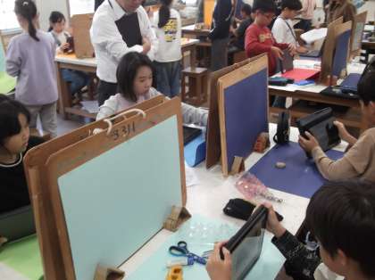 図工室で5年1組が図画工作科の研究授業を公開しました。