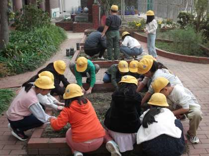 今日は畑の畝に双葉と値をていねいに植え替えました。