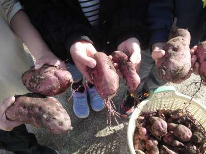 サツマイモのツルは丈夫で縄跳びにして遊ぶことが出来ます。