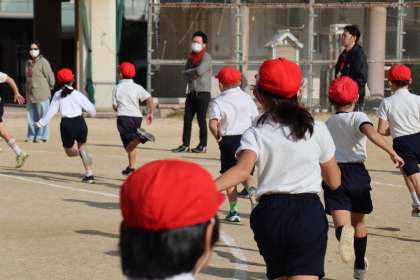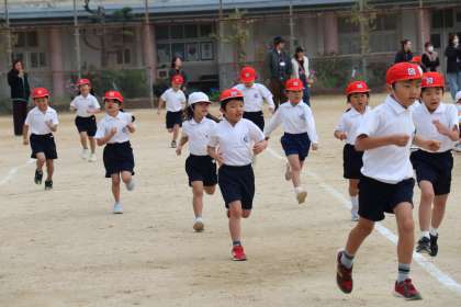 1,3年生によるかけあし大会が運動場で開催されました。