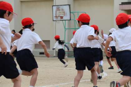 指定された時間内に運動場を何周できるかの記録をとりました。