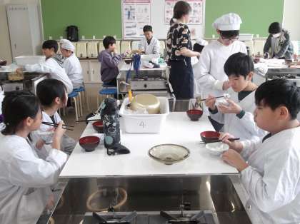お米の炊き上がる匂いと味噌汁の香りが、家庭科室一杯に広がりました。