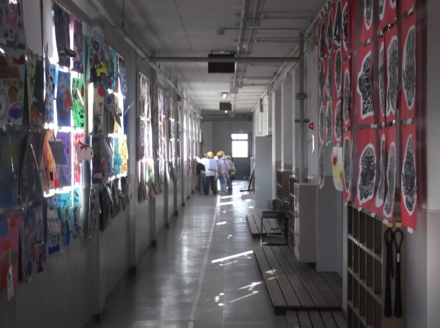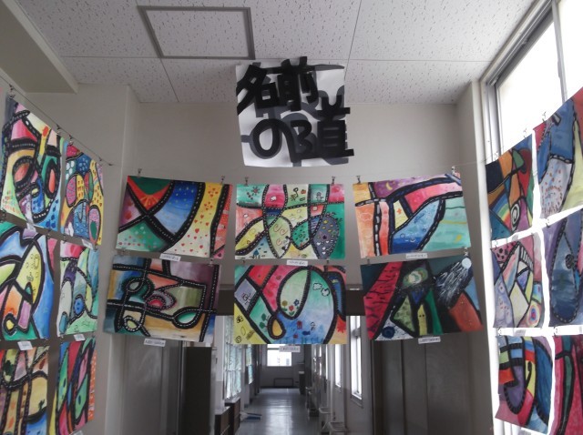 集会室から図書室、図工室、放送室、なかよし学級、学習室前が展示場所です。