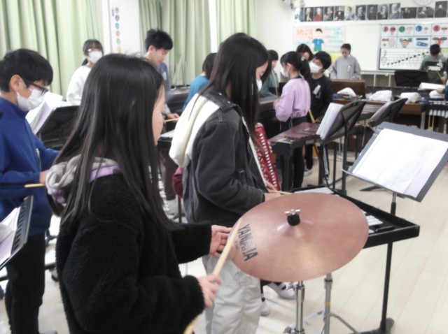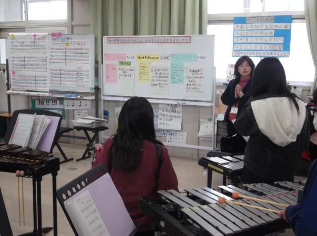 6年2組の公開授業が音楽室でありました。 題材「豊かな表現」 教材「L-O-V-E」(作曲B.ケンブフェルト) 6年生の教材としてジャズが登場しました。 ジャズの独特のリズム感覚を大切に、演奏に躍動感とグルーブを生み出していきます。 本時は3つのグループで練習してきた「L-O-V-E」の発表会でした。 友だちからのアドバイスを参考に練習をした後、いよいよ発表です。 スウィングを楽しみながら嬉しそうに演奏できました。 最後に、しあげとして全体演奏がありました。 みんなで演奏できた喜びで、満足した顔をしていました。