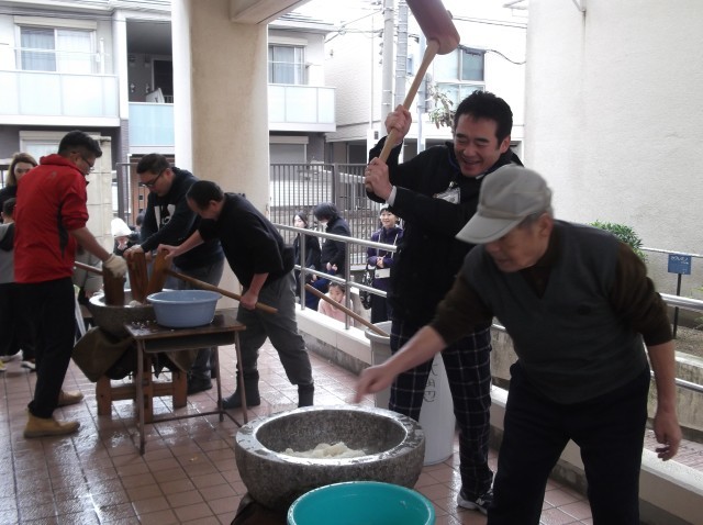 東住吉区長にもお越しいただき、餅つきをお願いいたしました。