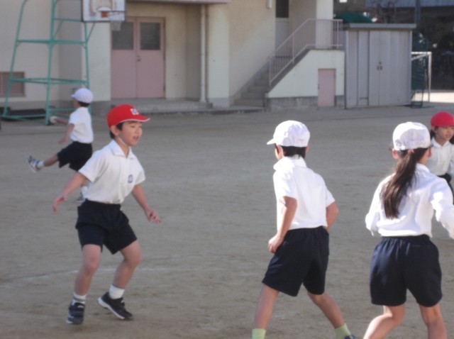 相手の陣まで鬼にタッチされないで玉を運びます。作戦とチームワークが大切です。