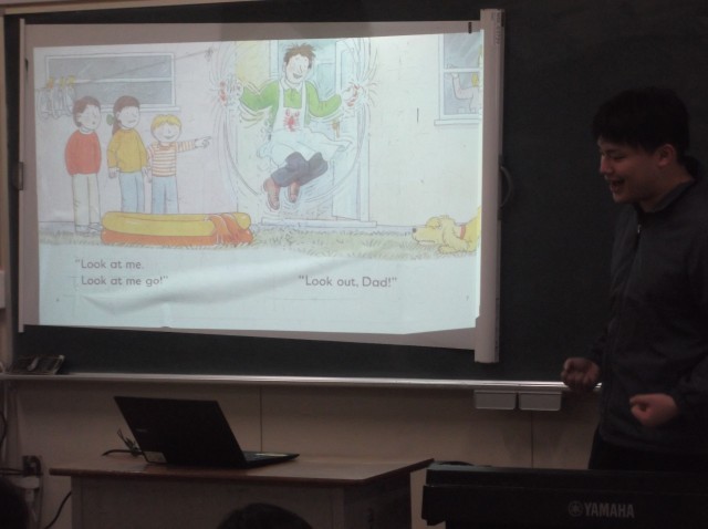 水曜日はモジュールの時間を活用して、英語絵本の読み聞かせがあります。 担任以外の先生が手分けをして、読み聞かせします。 今日は1組ディです。 3年1組にはC-NETのウイリアム先生が来てくれました。 どんな英語の絵本が登場するか、いつも楽しみな時間です。