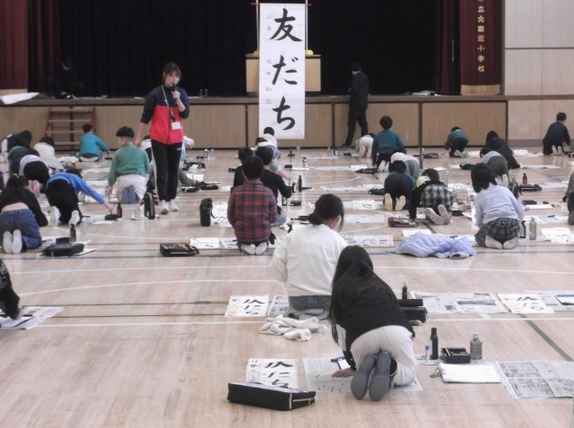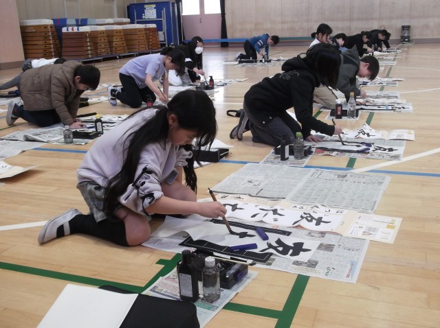 3年生が講堂で書き初めを行いました。