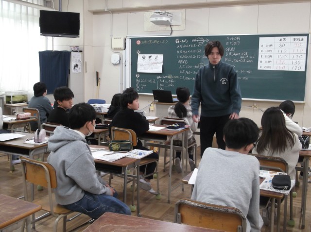 5年生が3つのコースに分かれて算数科の授業を実施しました。 単元名「比べ方を考えよう」 目標は、買い物する場面で値引きされたパンを購入するとき、A店が20%引き、B店は30円引きの時、どちらが安いか考えました。 既習の学習を活用して数理的にとらえ理論的に考察していきました。 計算して求めたら、100円のパンはA店なら80円でB店なら70円、200円のパンならA店なら160円でB店なら170円です。 「20%引き」と「30円引き」に着目していくと、購入するパンの定価が150円の時が得する時の基準となることが分かってきました。 生活の中で活用したい数学的思考力です。