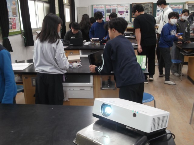6年1組で理科の公開授業がありました。理科室での実験学習でした。単元名「発電と電気の利用」。本時の目標「手回し発電機を正しく使いながら、発電の様子を調べ、適切に記録できる」。手回し発電機の使い方を習得し、発電の様子を班ごとに調べてまとめます。タブレットに結果を入力すると、大きなモニターに示されました。実験の経過を動画でタブレットにも記録しました。各班の結果をまとめながら、考察していきました。発光ダイオードと電子ブザーが予想と違う結果となり、興奮する児童たち。実験の結果を大切にして、生活の中に活かしていきます。