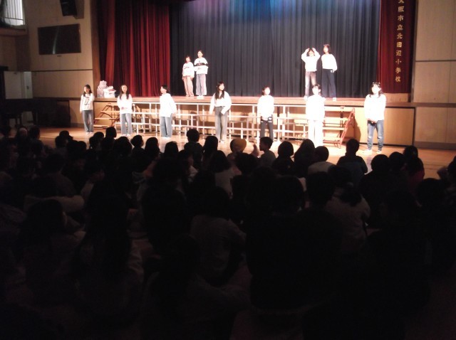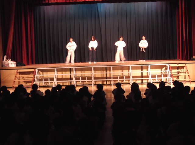 ダンスクラブによるクラブ発表会がありました。                                                                      ダンスクラブでは、1年間を通して、かっこいいチームとかわいいチームに分かれて練習しました。                                                選曲や振り付け、練習方法等は全てチームの仲間で話し合って進めました。                                                   全校児童の前でしたが、堂々として発表でした。                                                                会場からのアンコールに対して、嬉しそうに答えていました。