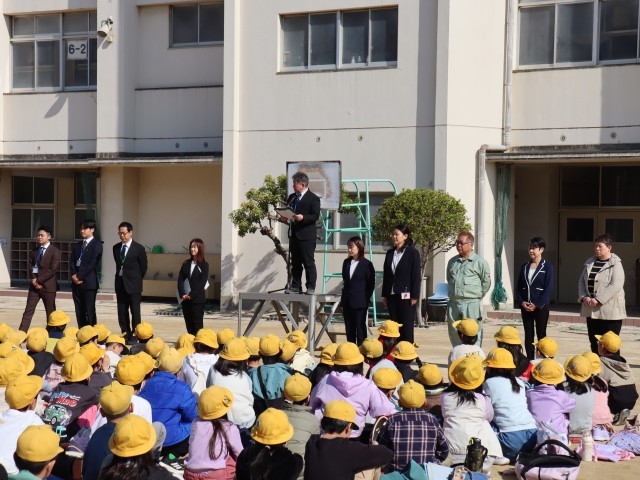 校長先生から着任のあいさつがあった後、着任された教職員の紹介とあいさつがあり、転出された教職員の紹介もありました。