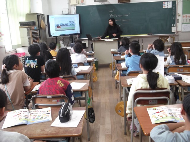 3年生が外国語活動で、CーNETの先生と世界の国の挨拶を学習しました。