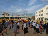 月曜日の朝は、運動場での児童朝会でスタートします。 元気に行進して整列しました。...
