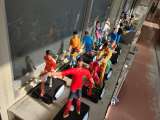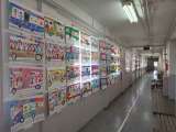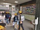 6年生の教室前のロッカーの上や階段廊下の掲示板に、図画工作の作品が展示されていま...