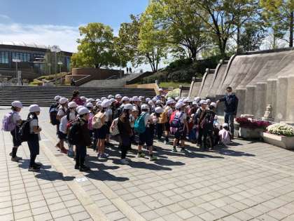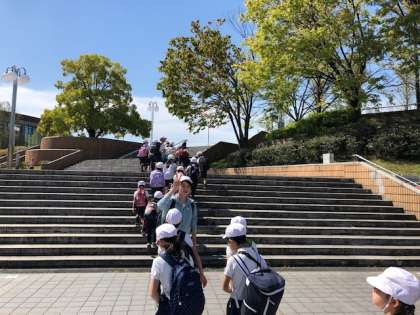 3年生は、春の遠足で鶴見緑地公園に行きます。鶴見緑地駅に到着し、これから咲くやこの花館を見学します!