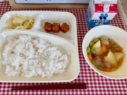 1年生は、初めてまぐろのオーロラ煮を食べました。食べる前は「まぐろ嫌いなんだよね。」「魚が食べられないんだけど・・・。」と言っていた子も、食べてびっくり!「これなら食べられる!」「おいしい!」と言ってくれた子が続出でした。