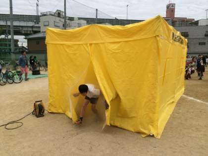 子どもたちの活動が終わってから、保護者の方も体験する時間を設けていただき、大人も煙体験を行うことができました。