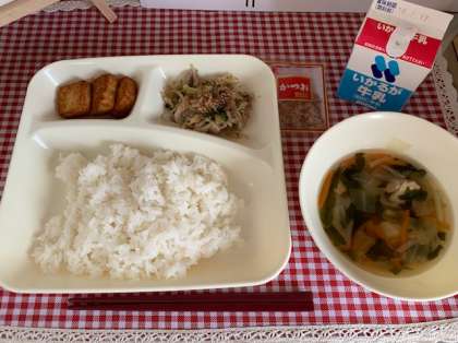 夏野菜のゴーヤ(にがうり)を使ったゴーヤチャンプルーが出ました。ゴーヤを一度塩でもむことで苦みをおさえ、子どもたちが食べやすいよう調理しました。豚肉もたくさん入っていたので、子どもたちは苦さを感じながらも、たくさん食べてくれました!