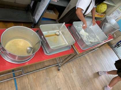 あるクラスに行くと、食缶が空っぽでした!ピカピカになった食缶を見ると、とても気持ちが良いです。