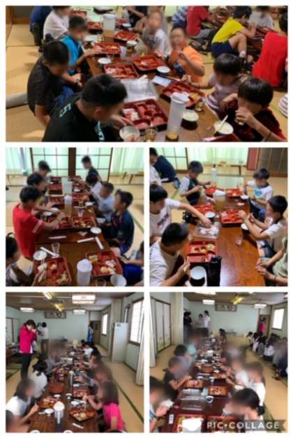 今朝、田辺小学校を出発して、海での練習も無事に終えました!一日頑張ったので、お腹も減りました!みんなもりもり元気いっぱいに食べています!