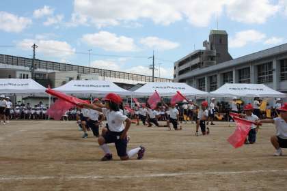 3枚目:団体演技「気分上々↑↑」旗を振りながらかっこいいダンスを見せてくれました。「バサッ!」と旗の音を立てながら、動きを揃えてとるポーズが素敵でした!