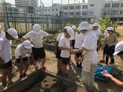 今日は、地域の方々にご協力いただき、5年生が田辺大根の種まきをしました!