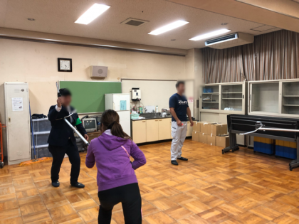 不審者に対してどのような行動をとればよいのか、さすまたを使った対応の仕方などを教えていただきました。