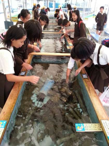 お触り体験コーナーでは、たこの吸盤をはじめいろいろな生き物を触ることが