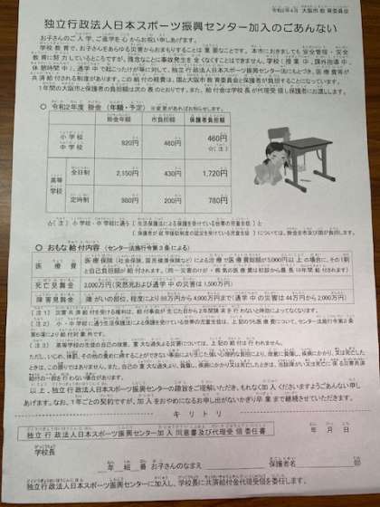 「日本スポーツ振興センター加入申し込みについて」 【4月10日】