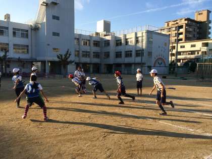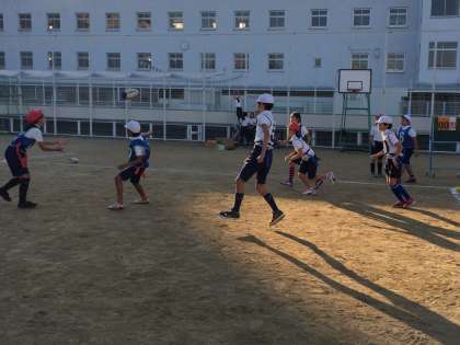 6年生は、体育科の学習で「タグラグビー」を行っています。