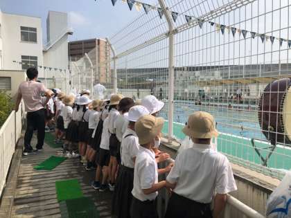 臨プールの応援にたくさんの学年の子どもたちがやってきています!頑張れ!6年生!