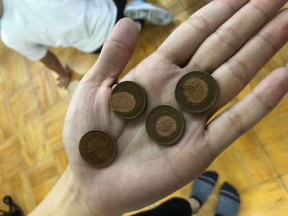 まず、安全でおいしい田辺大根を育てるために、微生物が発酵する力を使って根から栄養を吸収するというお話を聞きました。発酵する時の浄化作用についての実験も見せていただき、10円玉の色の変化にみんなびっくりでした。