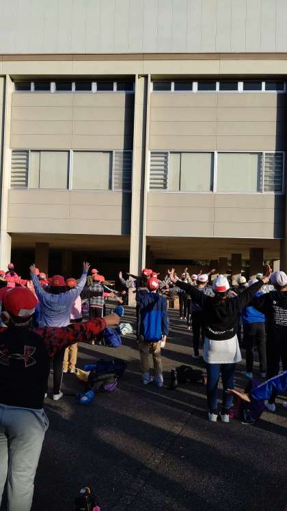 ラジオ体操をして、頭も体も目覚めさせます。