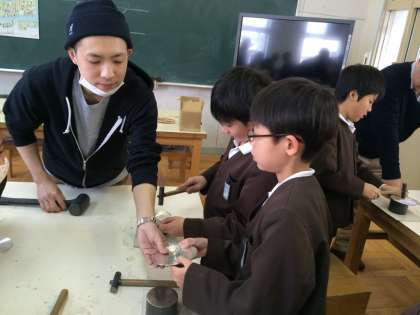 4年生 体験学習(大阪錫器製作)【1月9日】