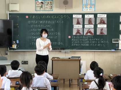 1年生で手洗い指導を行いました。