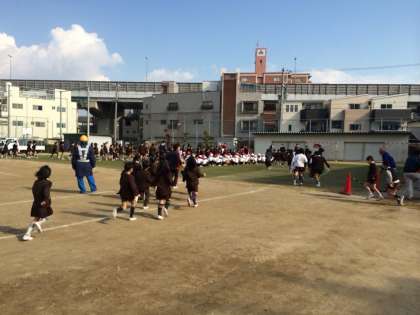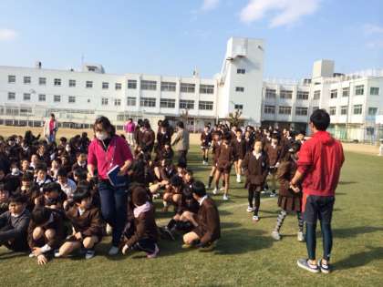 避難訓練が始まると、子どもたちも素早く運動場に出て、落ち着いて並ぶことができました。その後、津波の避難として学級に分かれ3階に上がる訓練を行いました。